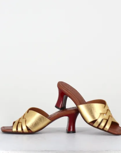 Nalma44 Pantolette aus goldfarbenem Leder — 6,5 cm Absatz