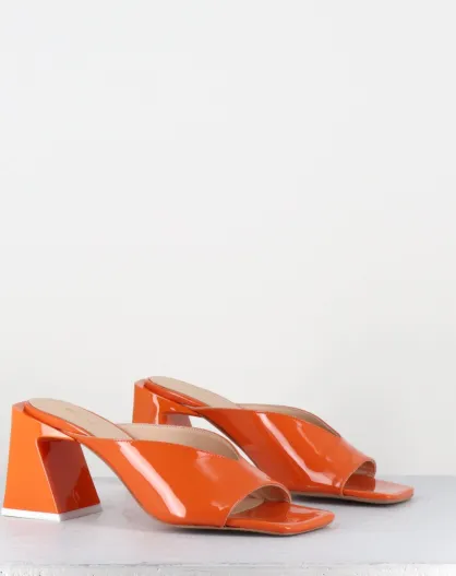 Pantoletten Tasha aus orangefarbenem Leder, Absatz 8 cm