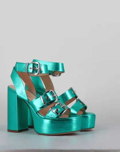 Blaue Phile-Ledersandalen - 12,5 cm Absatz