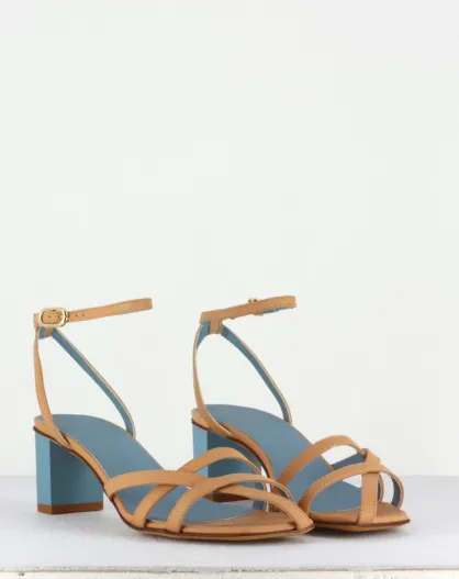 Mia Ledersandalen in Kamelbraun - 5 cm Absatz