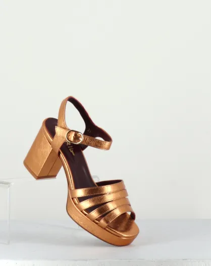 Goldfarbene Ledersandalen Eban - 8,5 cm Absatz