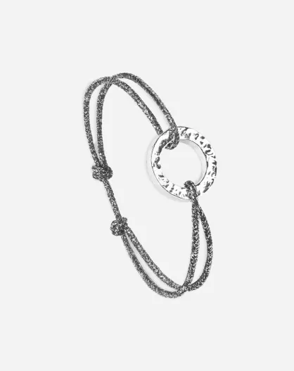 Flaches Kreis-Armband aus gehämmertem Silber/Grau