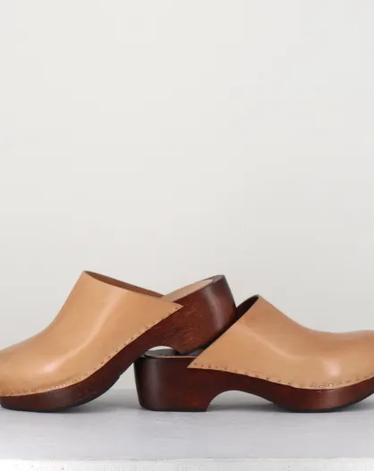 5060 beigefarbene Lederclogs - 5 cm Absatz