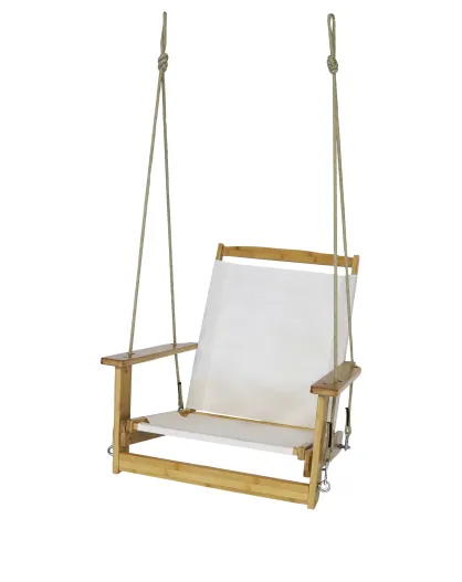 Hängesessel Gipsy mit Armlehnen aus Elfenbein und Holz — 70x102x96cm