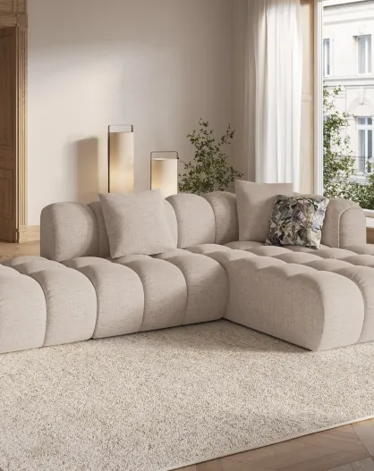 Elise Cappuccino-Ecksofa für 4 Personen, modular, rechts, 300 x 190 x 70 cm
