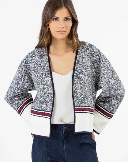 Casey blaue gesteppte Jacquard-Baumwolljacke