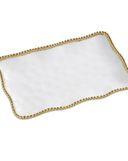 Golden Salerno kleine Servierplatte in Weiß und Gold — 27,9 x 19,1 x 2,5 cm