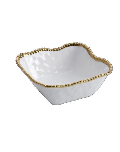 Golden Salerno mittelgroße quadratische Salatschüssel in Weiß und Gold — 22,9 x 21,6 x 8,3 cm