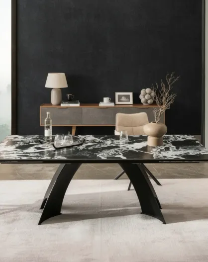 Napoleon schwarzer Keramiktisch mit schwarz-weißer Marmorierung - 180 (260) x77x90 cm