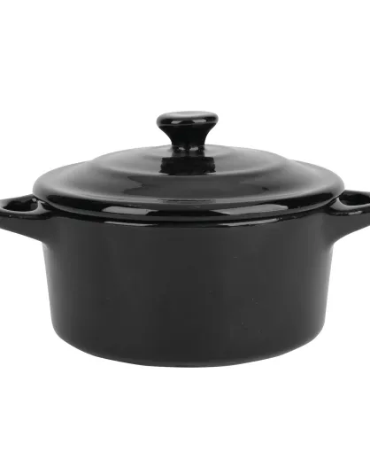Eleganter schwarzer runder Mini-Kochtopf aus Steinzeug, D.10 cm