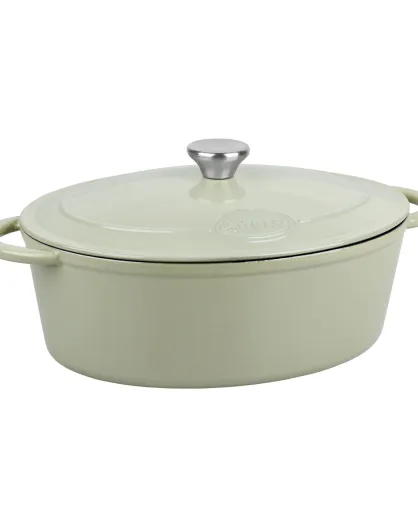 Tradifonte Kochtopf aus emailliertem Gusseisen, grün, oval, 4 l