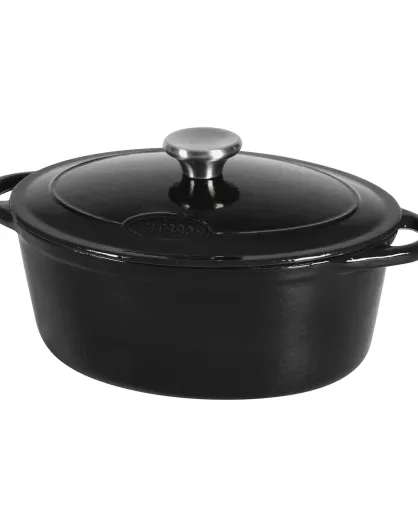 Tradifonte Kochtopf aus emailliertem Gusseisen, schwarz, oval, 4 l