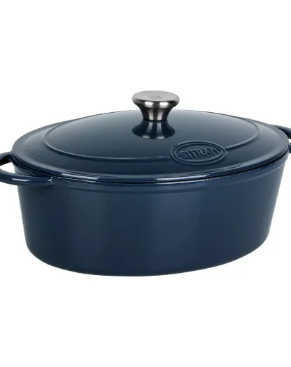 Tradifonte Kochtopf aus emailliertem Gusseisen, oval, blau, 6,5 l