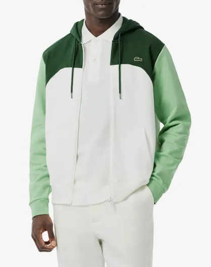 Weiß/liamone-grüner Kapuzenpullover mit Farbblock-Reißverschluss