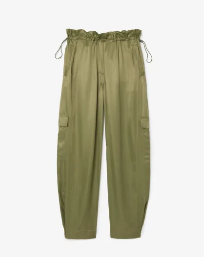 Khakifarbene, fließende Hose mit Cargotasche