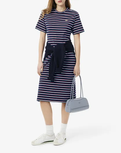 Gestreiftes Jersey-T-Shirtkleid in Marineblau/Grenadine-Stream
