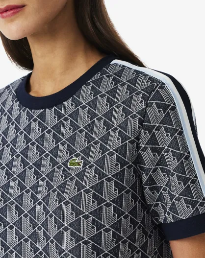 Slim-Fit-T-Shirt aus Jacquard mit Monogramm in Marineblau/Weiß