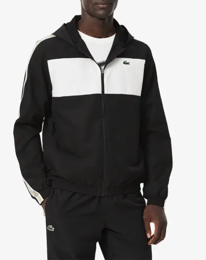 Sportliche Farbblockjacke mit schwarz-weißen Streifen