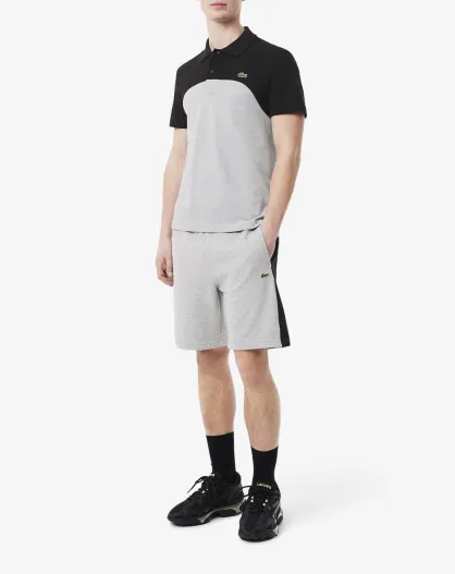 Melierte Baumwollfleece-Shorts mit Farbblockmuster in Silber/Schwarz