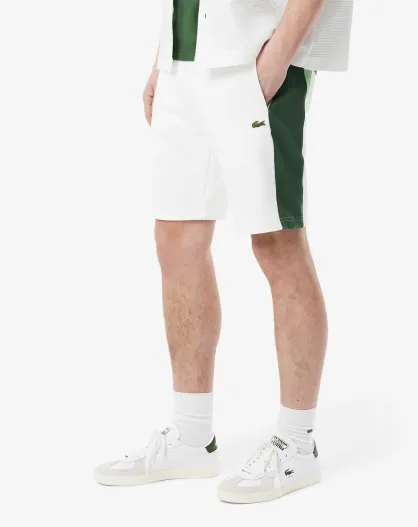Weiße/liamone-grüne Baumwollfleeceshorts mit Farbblockmuster