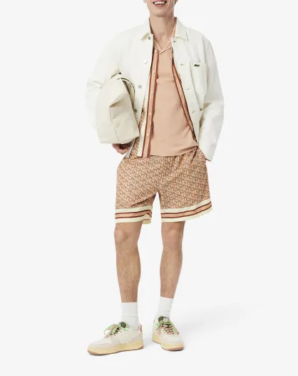 Leichte Shorts mit Monogramm-Print in Latte/Iberis-Kristallin