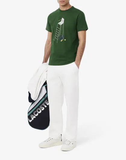 Heritage Tennis-T-Shirt mit grünem Aufdruck