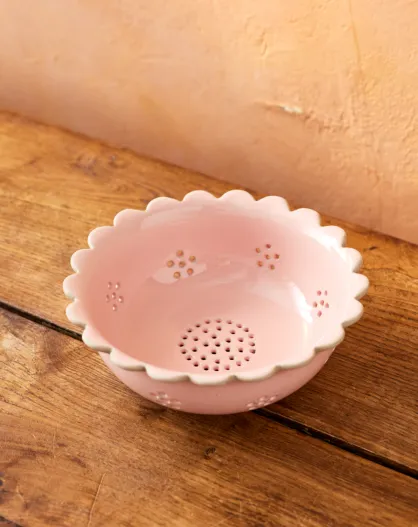 Big Love Beautiful Siebschale mit rohen rosafarbenen Beeren, 20 x 20 x 7,2 cm