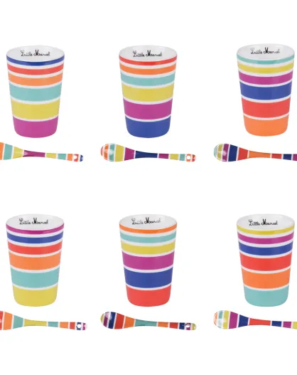 Set mit 6 Tassen mit bunten Löffeln — 8 x 6 x 8 cm