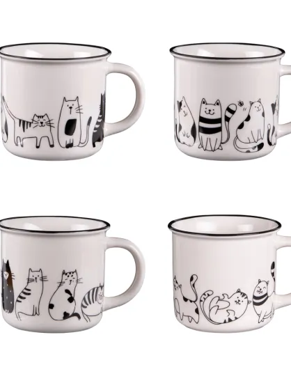 Set aus 4 Tassen Friends weiß/schwarz - 13x10x9cm