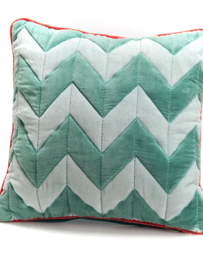 Grünes Zick-Zack-Samtkissen - 45x45 cm