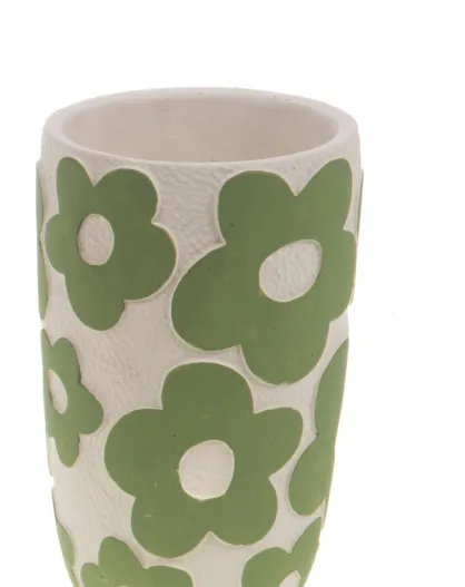Zementvase Gänseblümchen, grün, Höhe 25 x 14,50 cm
