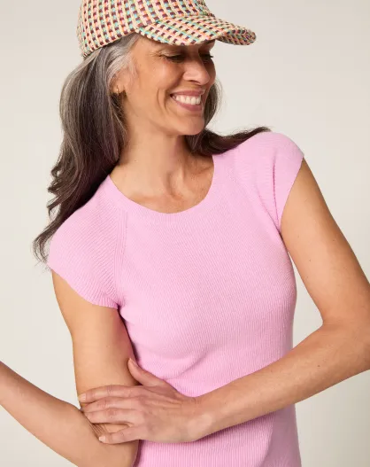 Rosafarbener Pullover mit kurzen Ärmeln aus Rayo
