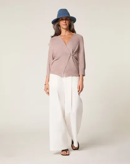 Ife beige melierte, offene Weste mit Puffärmeln