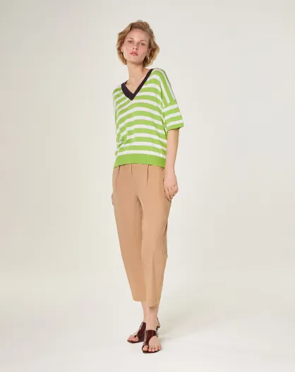 Gestreiftes Baumwoll-T-Shirt mit V-Ausschnitt Nawal Verbena