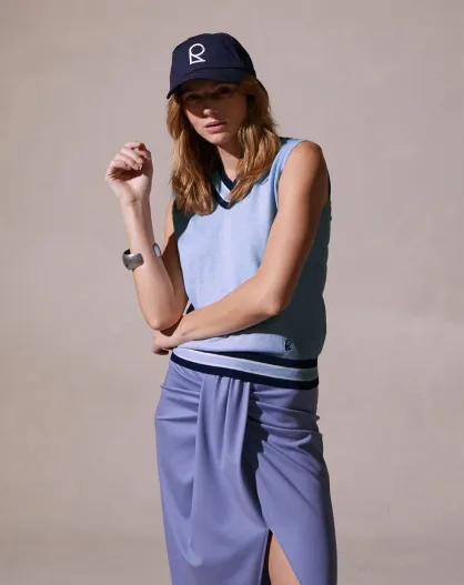 Himmelblaues, ärmelloses T-Shirt Souad aus Baumwolle mit V-Ausschnitt