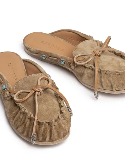 Mokassin-Pantoletten aus karamellfarbenem Leder
