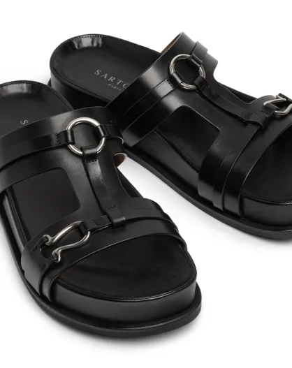 SR4532 schwarze Ledersandalen