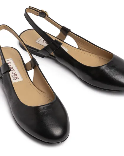 Schwarze Leder-Slingbacks