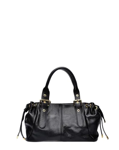 SS26 AL 170T Schultertasche aus schwarzem Leder - 21x34x9 cm