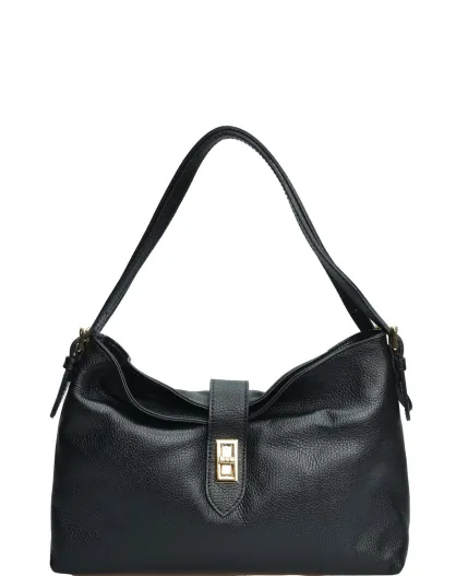 SS26 AL SBV19 Schultertasche aus schwarzem Leder - 24x37x10,5 cm