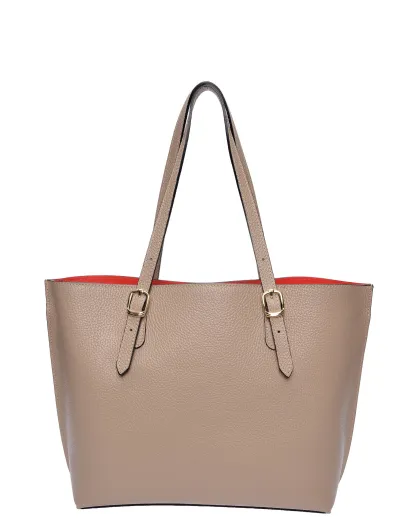 SS26 IR 176 Schultertasche aus taupefarbenem Leder - 26x29x9,5 cm