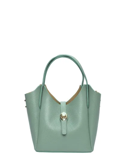 SS26 IR 180T Tragetasche aus minzfarbenem Leder — 14 x 16 x 10 cm