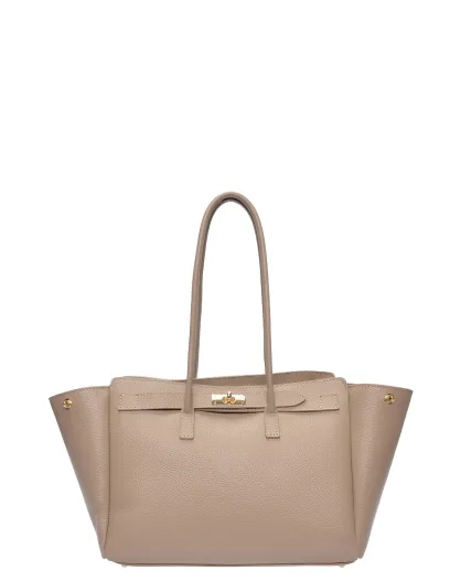 SS26 IR 177T Schultertasche aus taupefarbenem Leder - 26x32x10 cm