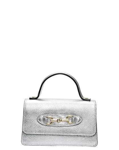 SS26 IR SBV 6 Schultertasche aus silberfarbenem Leder - 11x19x18,5 cm