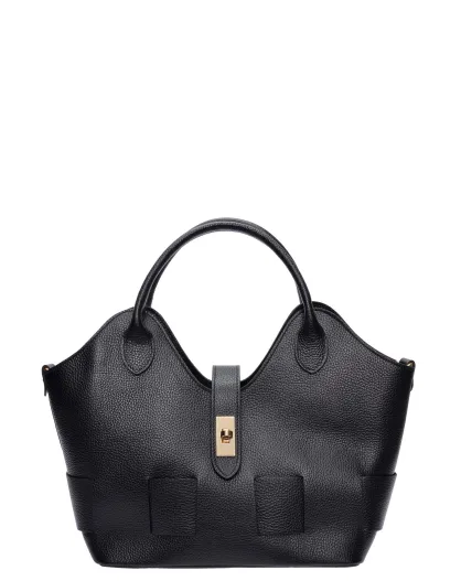 SS26 RM 153T schwarze Lederhandtasche - 19x27x16,5 cm