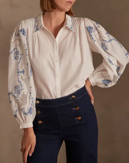 Clementine Bl ecrufarbene Stickbluse