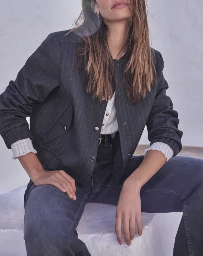Cecile Bl Gestreifte Jacke - Anthrazitgrau meliert