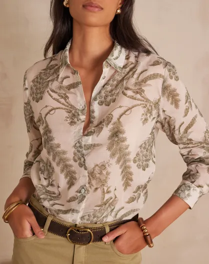 Colette Ch bedrucktes Hemd aus khakifarbenem Jo Canvas