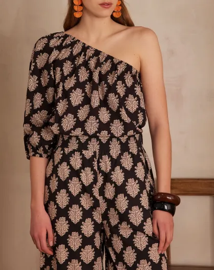 Choulder Bl Imp schwarze Bluse
