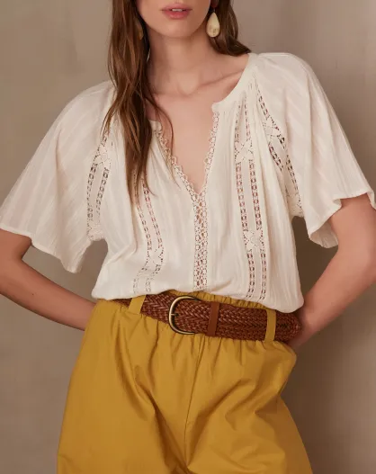 Prunelle Bl Ecrufarbene Bluse mit Stickerei